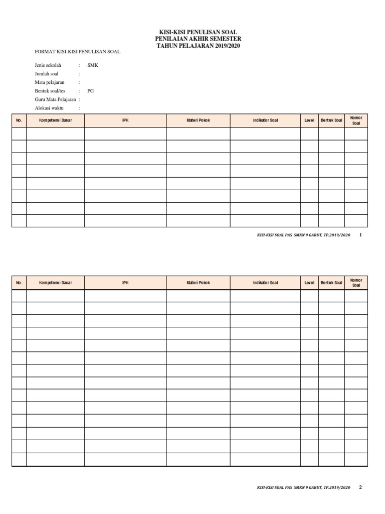 - Buat Tabel Kisi-Kisi: Masukkan semua informasi yang telah ditentukan ke dalam tabel kisi-kisi.